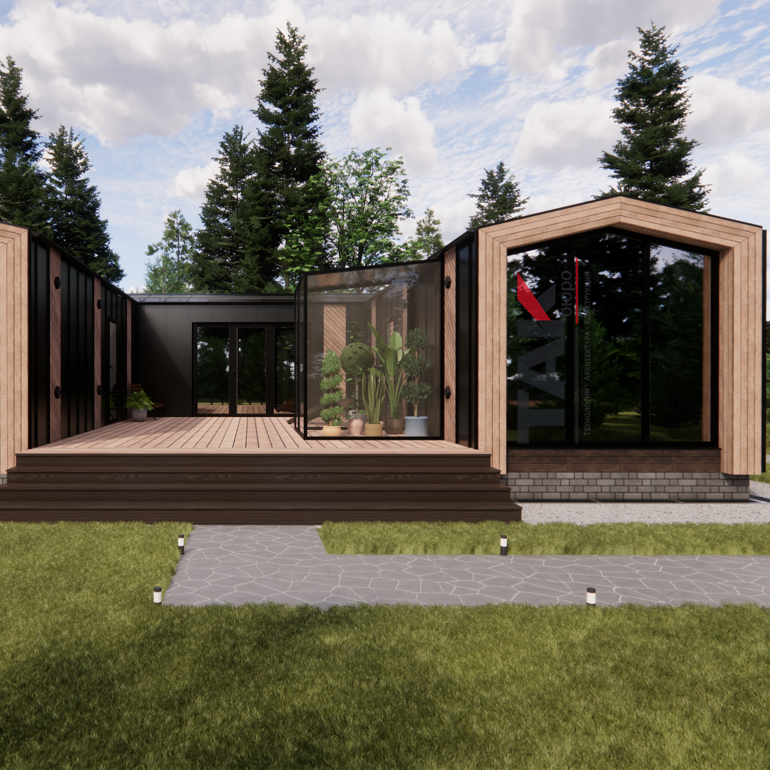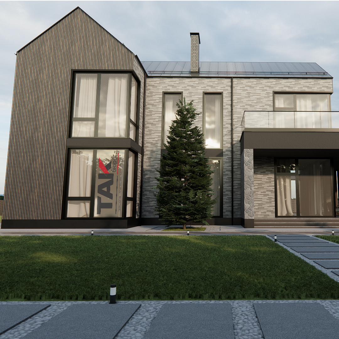 Объемно-планировочные решения, эскизы фасадов, посадка объекта на местности, 3D-визуализация, определение стилистики